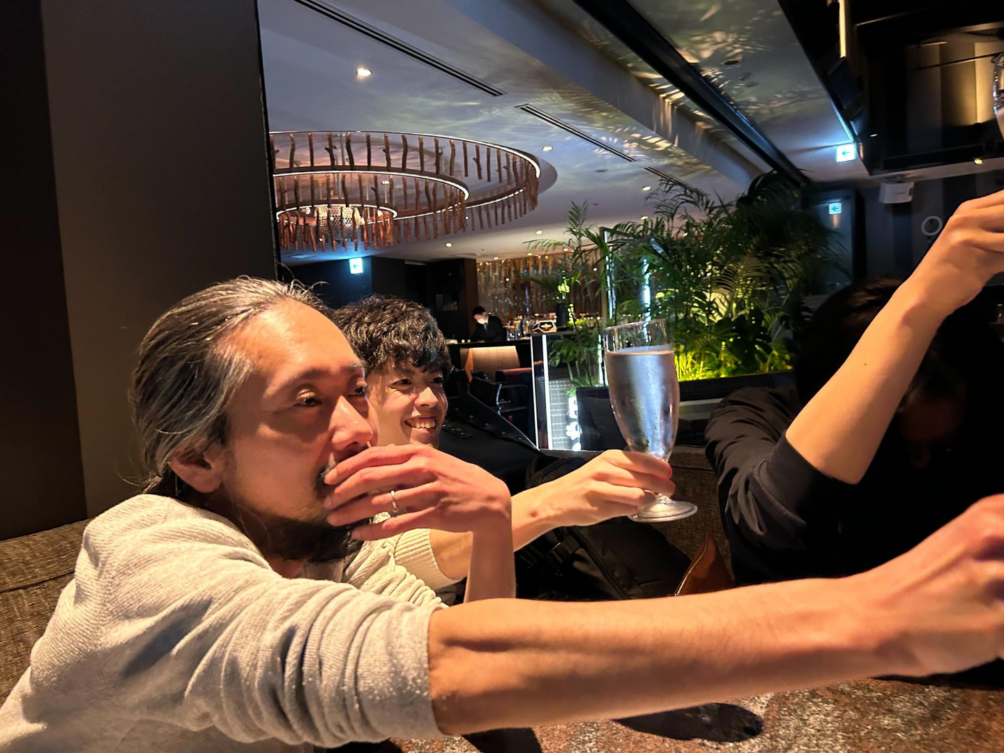 普段からオフィスで和気あいあいとした雰囲気のメンバー同士ですが、食事会ならではのプライベートな話も飛び出して、みんな楽しそうな様子ですね~!!