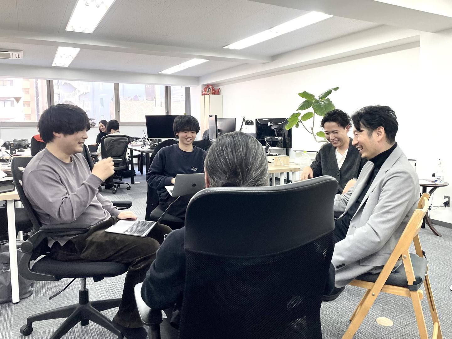イチマルイチデザインでは、入社したばかりの人がいても、代表の河東を含めフラットなコミュニケーションを大切にしています。