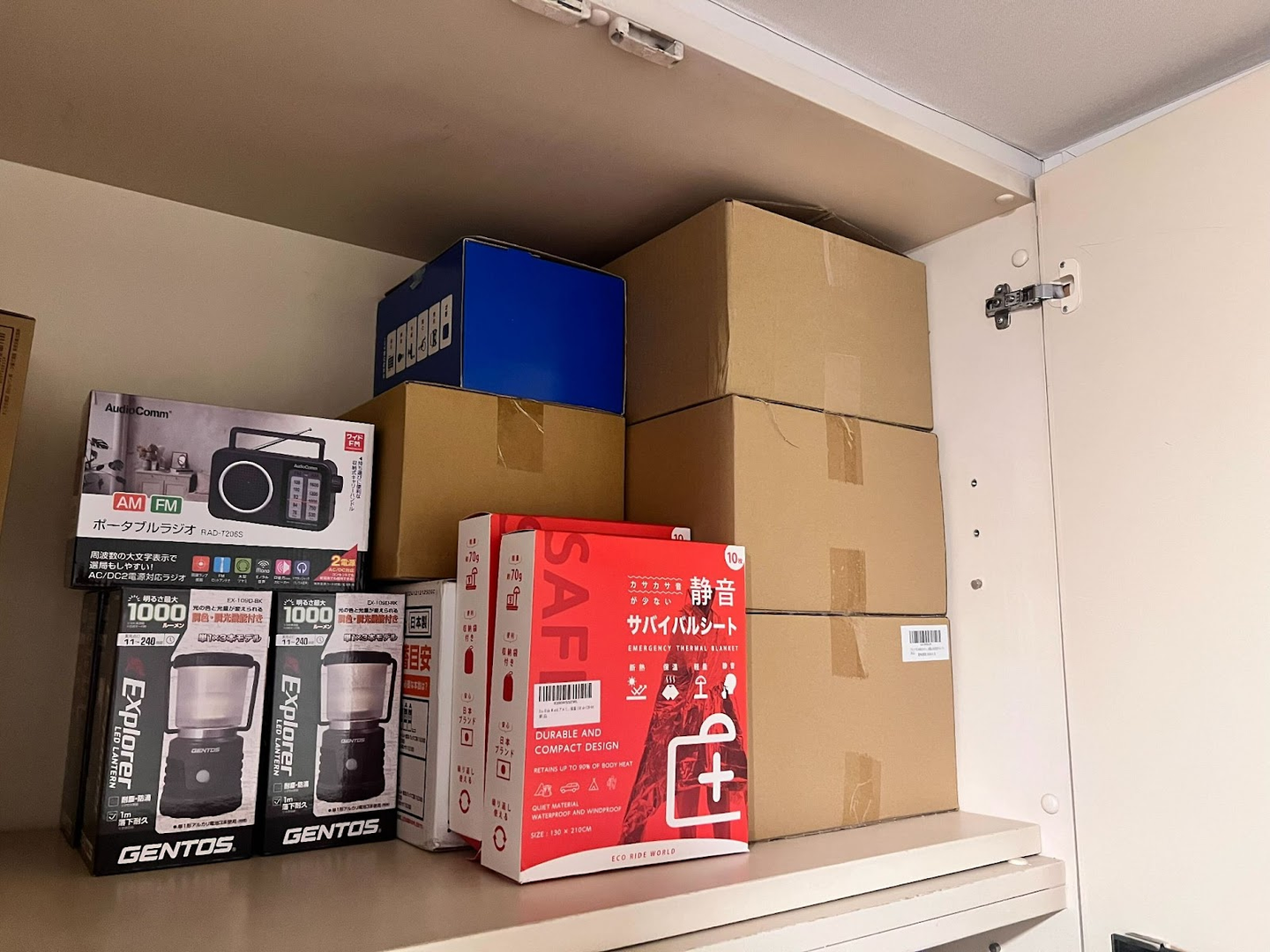 そんなことを考える機会は、日常の中ではあまりないかもしれません。しかし、いざというとき、備えがあるかないかで大きな差が生まれます。ワンパクでは、スタッフの安全を第一に考え、さまざまな防災グッズを準備し、常に誰でも取り出せるように玄関の棚の中に保管されています。