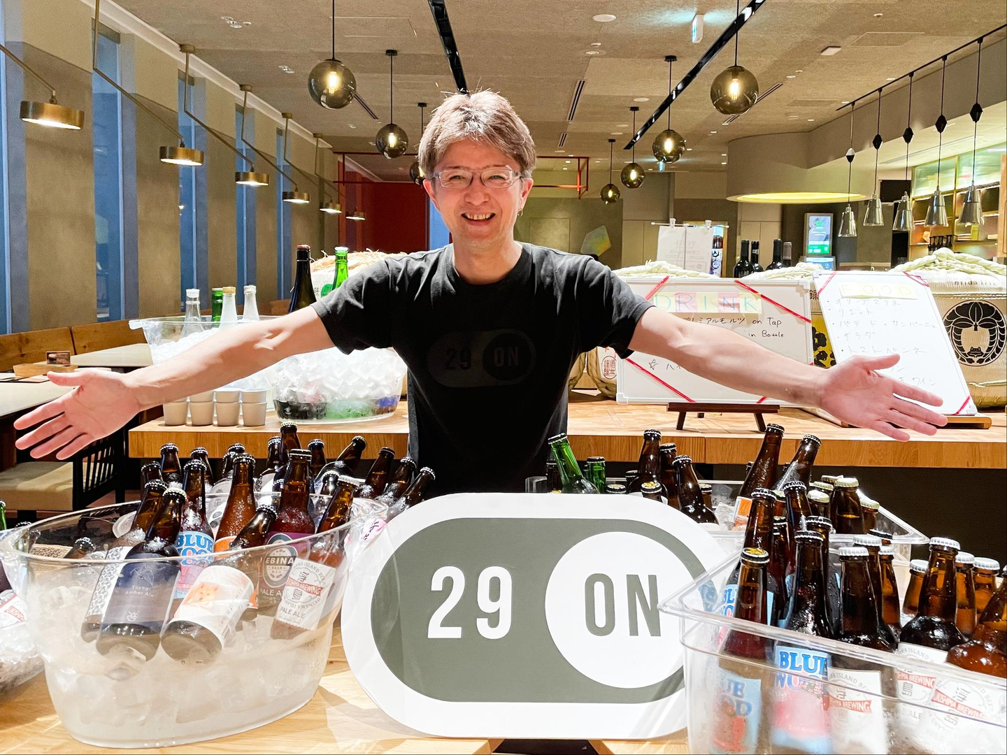 お客様のご対応をしながら、急いでビールなどをディスプレイしていきます。