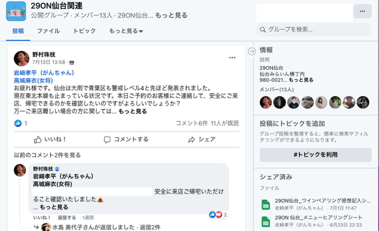 ページ公開後はメンバーみんなで記事を拡散。
