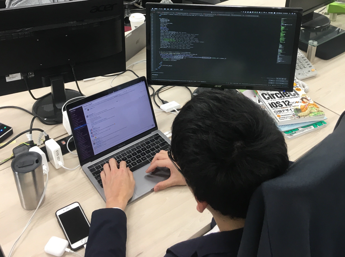 ディスプレイは一台は支給されるので、大画面での開発も可能です。
