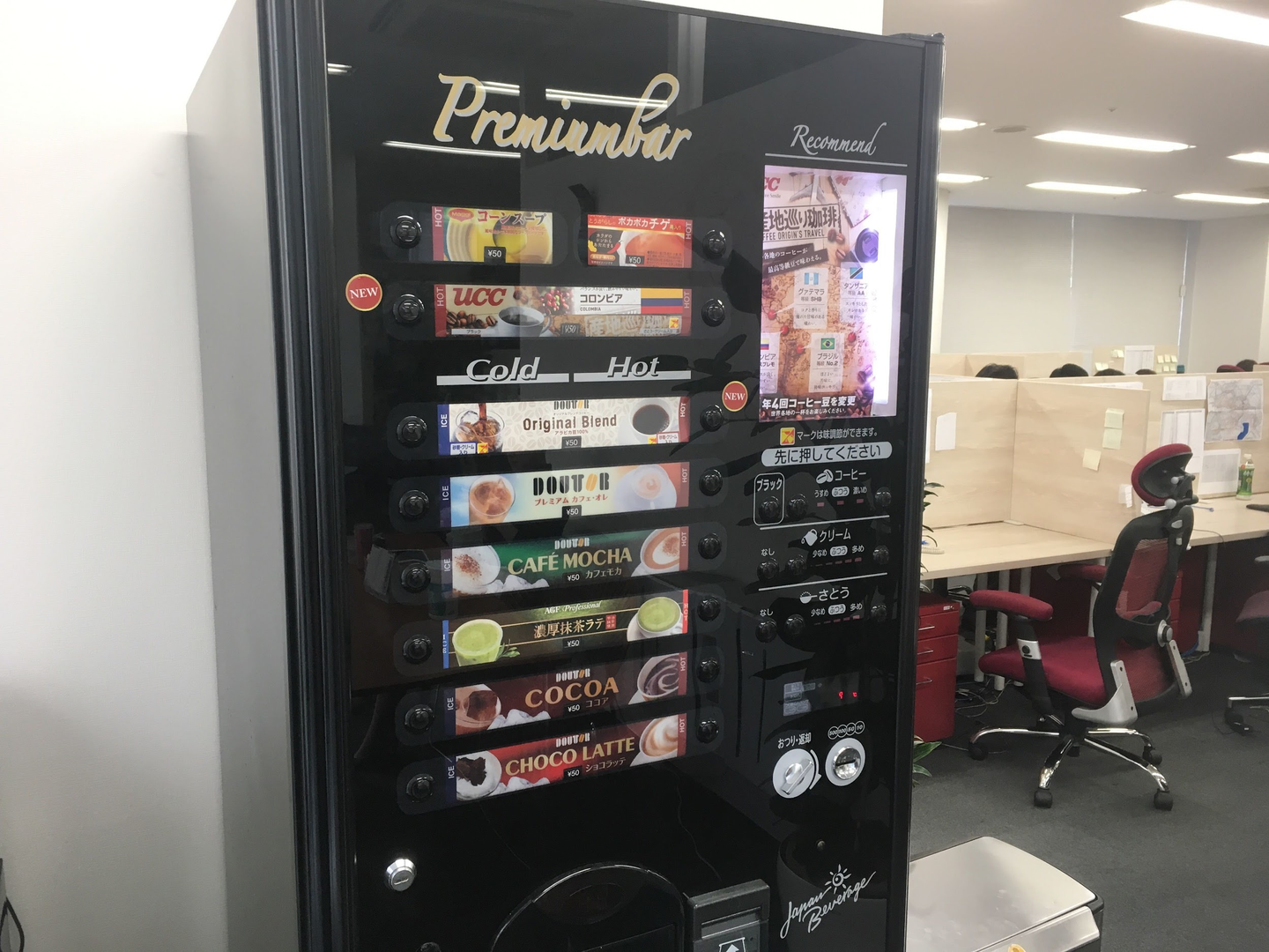 自動販売機もあり1杯50円でコーヒーが飲めます。