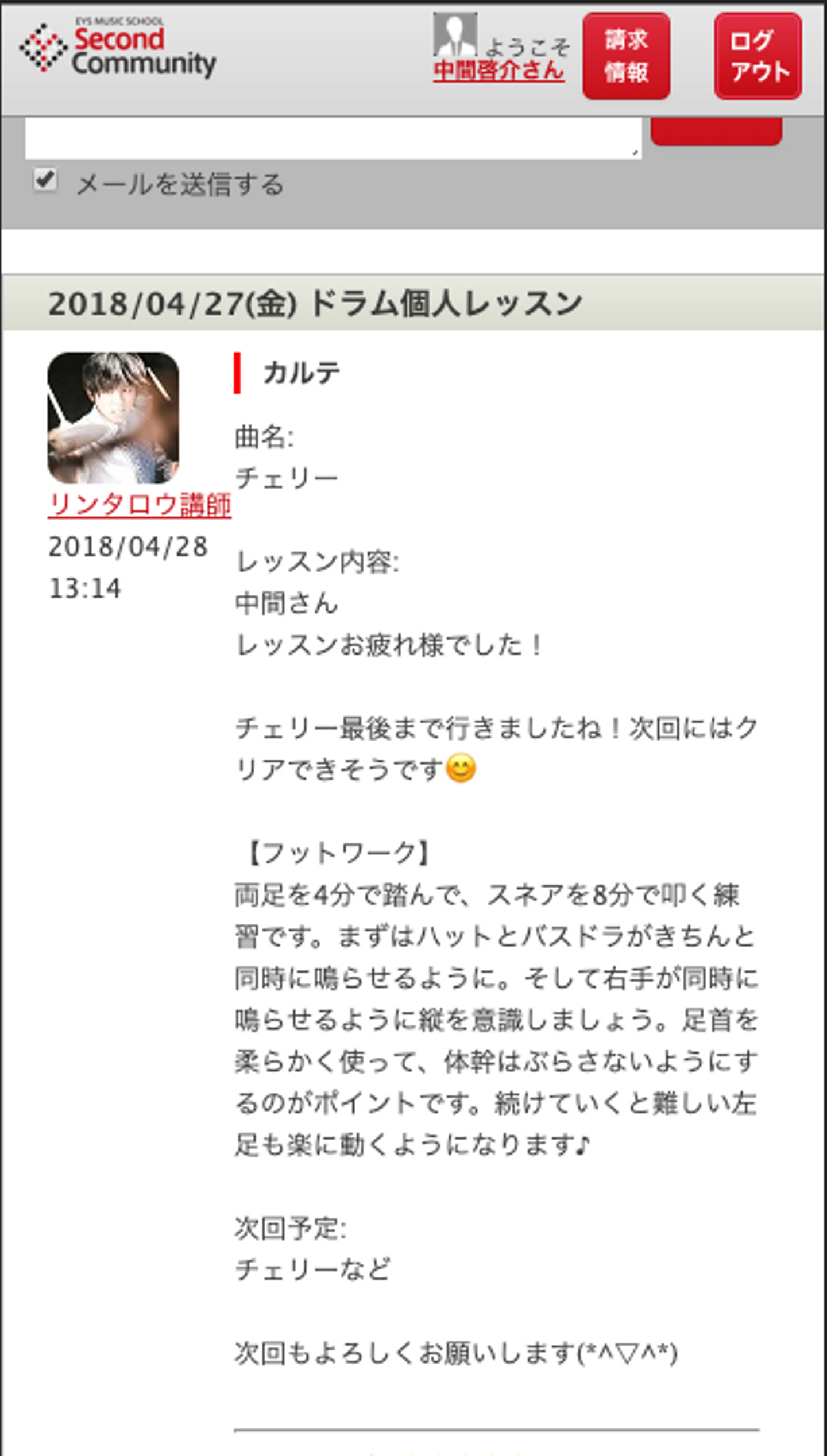 ドラムは未経験だったので、毎回緊張するのですがリンタロウさんがとても丁寧にやさしくおしえてくれるので安心です。
