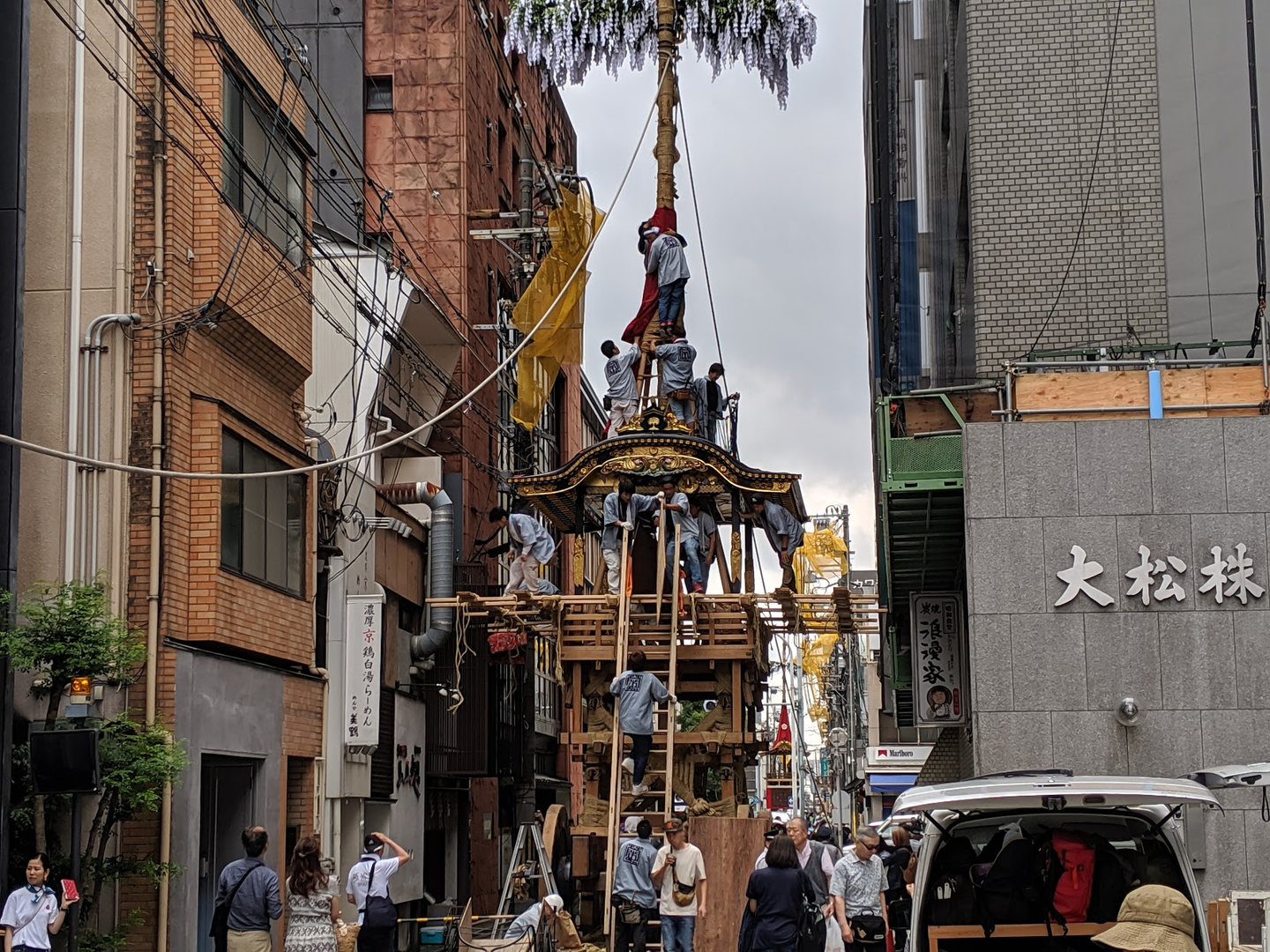 ここ京都では少し遅めの梅雨の中、祇園祭の準備が始まりました。