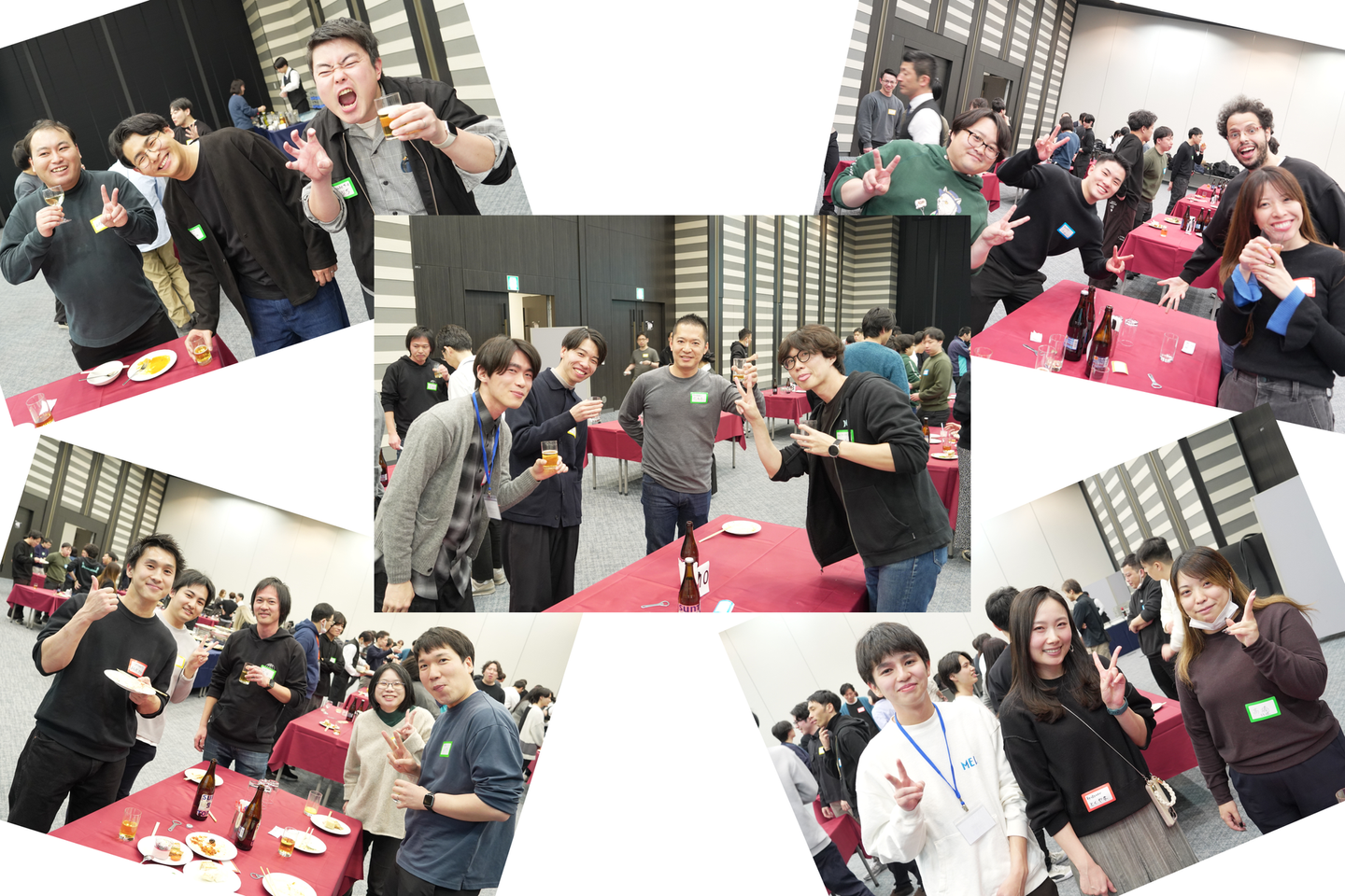 最初の懇親タイムでは、参加時に引いたくじを元に決まった席で歓談をスタートしました。 普段なかなか話す機会のない他部署の方や、フルリモートで働くメンバーとも親睦を深めることができました。その後、席替えが行われ、2回目の懇親タイムが始まりました。会話はさらに弾み、会場は活気に満ちていました。