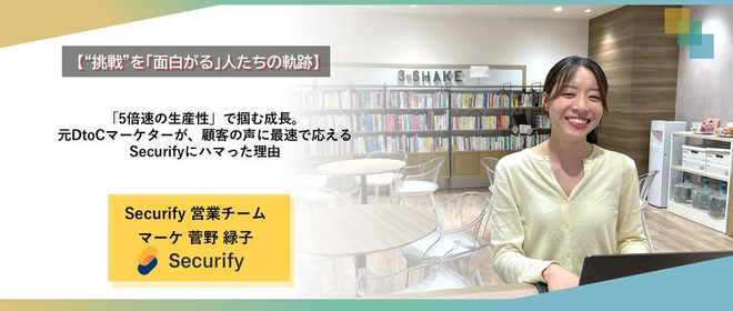 「お客様に寄り添いたい」その一心で、キャリアの壁を越えた菅野さん。前職でDtoCの商品企画・開発に携わる中で、改善スピードの壁にぶつかっていた彼女は、BtoB SaaSという新たなフィールドに挑戦することを決意しました。自律性が求められるスタートアップで、彼女が見つけたのは「やりたいこと」が実現できる恵まれた環境。今回は、菅野さんの転職ストーリーと、新たな挑戦の中で見つけたやりがい、そして成長の軌跡に迫ります。プロフィール・菅野 緑子・2025年4月入社・Securify事業部 営業チーム マーケティング担当現在の業務現在、Securify事業部においてSecurifyの売上拡大に向けた...