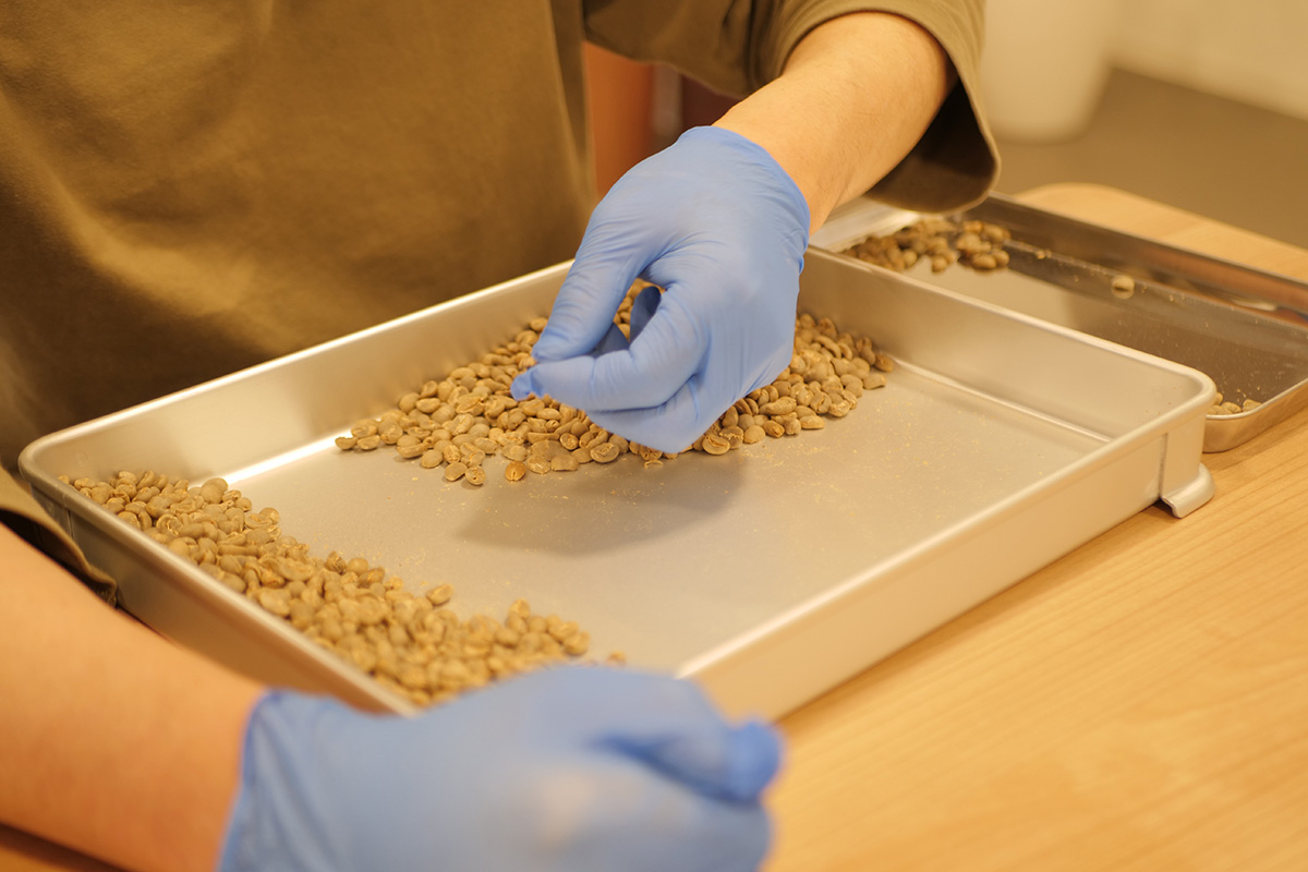 丁寧に豆の選別をしたあと