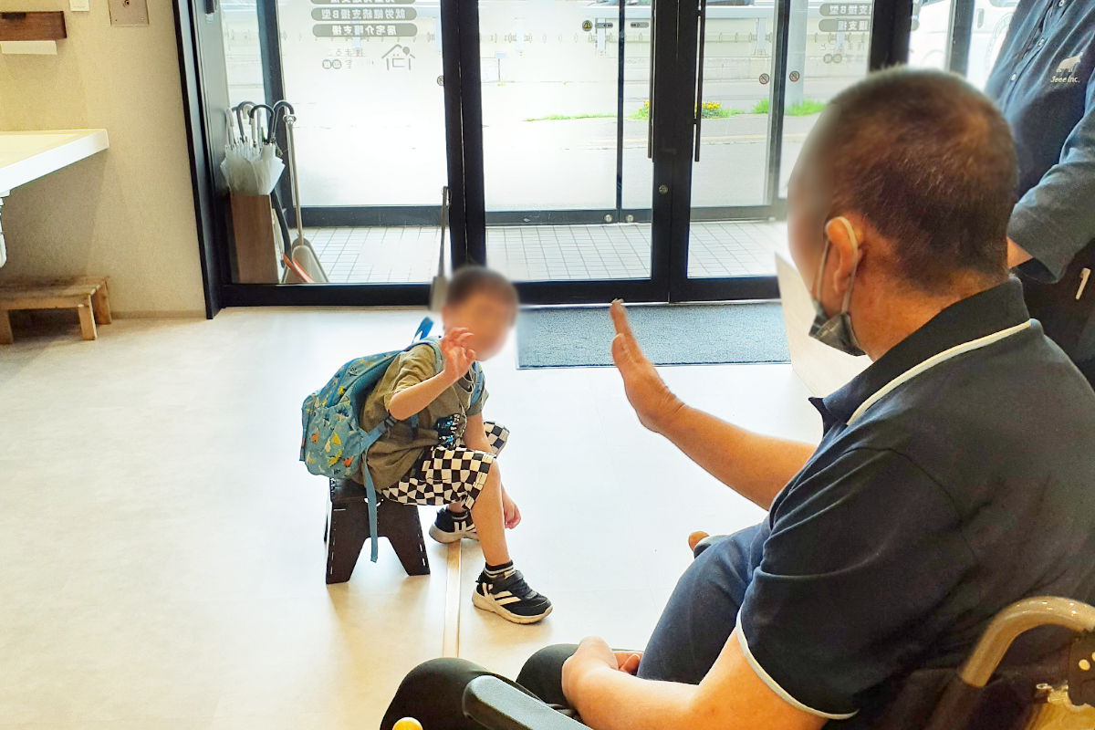 お帰りになるお子様に手を振って