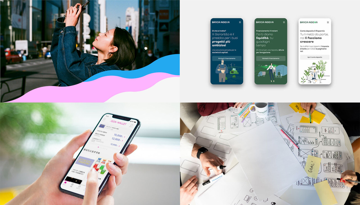 TOYOTA Financial Service / Banca AideXa などグローバルで活躍する「Tangity part of NTT DATA design network」と、ahamo / AEON / ゆうちょなど大手クライアントのプロジェクトに関わる「FOURDIGIT」。それぞれデジタルデザイン業界の第一線で活躍するサービスデザイナーが、事例の紹介や考え方、サービスデザインのリアルをご紹介します。