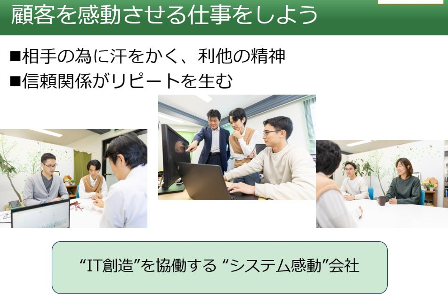 10年先を見据えて社員のメンバー構成を30前半以下の世代へ若返りを図りの2024年4月に新入社員を迎えるに当たり、この機にあらためて社としての一体感を醸成するとともに将来を見据えた組織づくりの種を蒔いておくことが重要と考えて年6回の研修とします