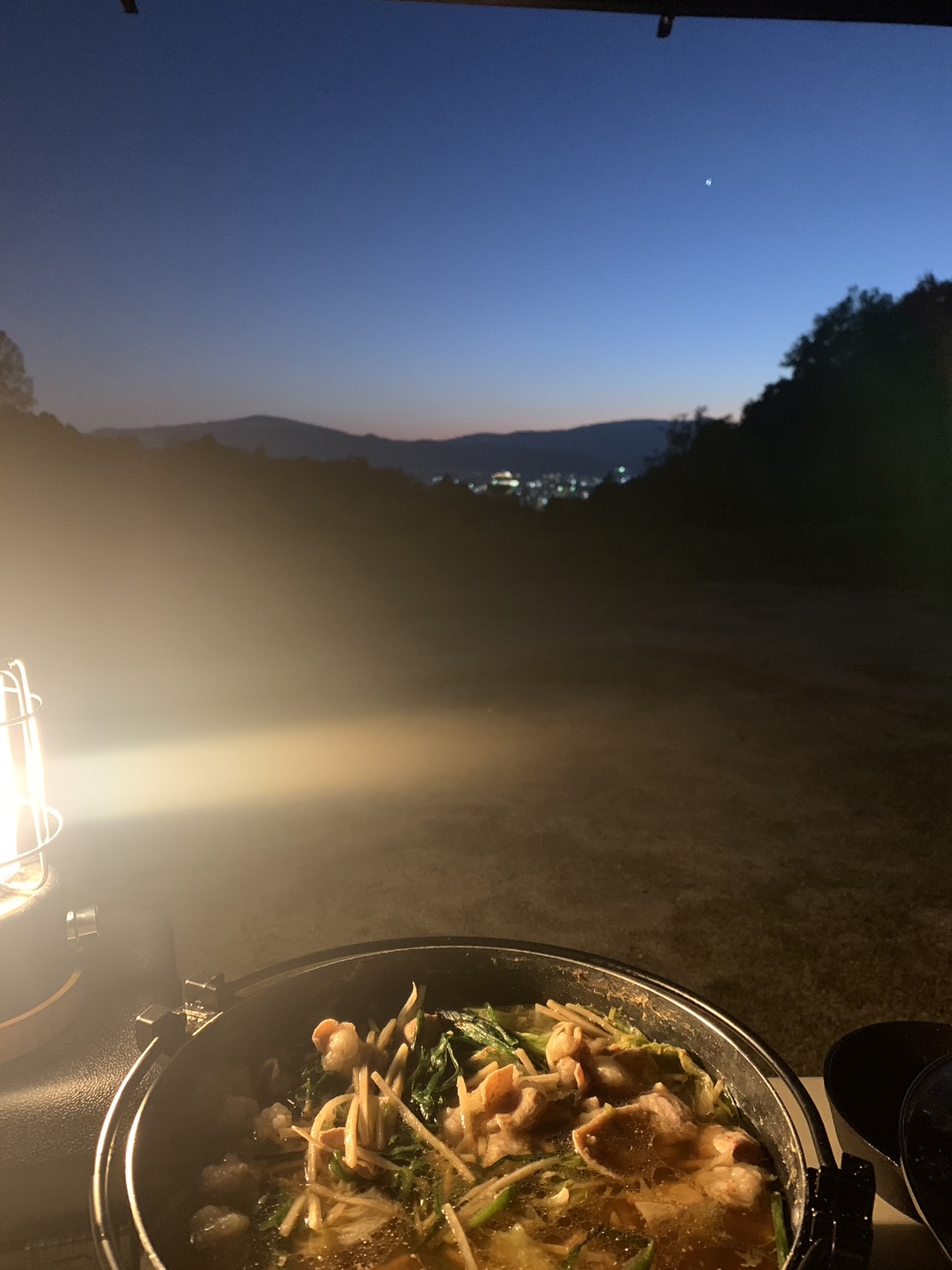 食べてたら暗くなってきたのでランタンつけてーこんな感じです。