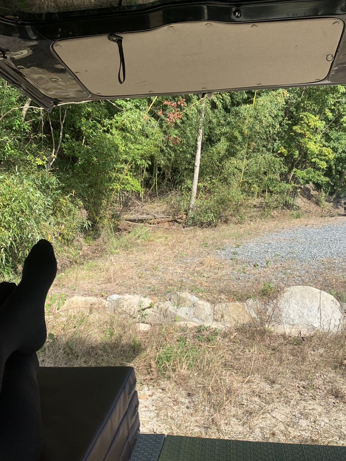 いつもの。チェックアウト時間まで車でごろごろしながら外を眺めているふじながです。
