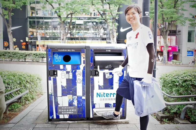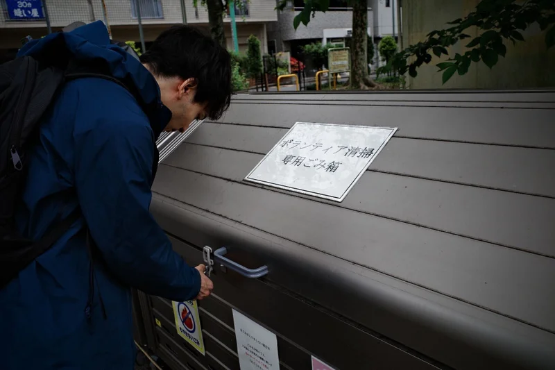 今回のプロギングで集まったゴミは、宮下公園あたりにあるボランティア用のゴミステーションへ持って行きました。渋谷区では積極的なゴミ拾いのボランティアを募るため、ボランティア清掃専用のゴミ箱があり、さらに清掃用具の支給の支援も行われています。今回もその支援によって、ゴミ袋などの備品を貸与してもらいました。
