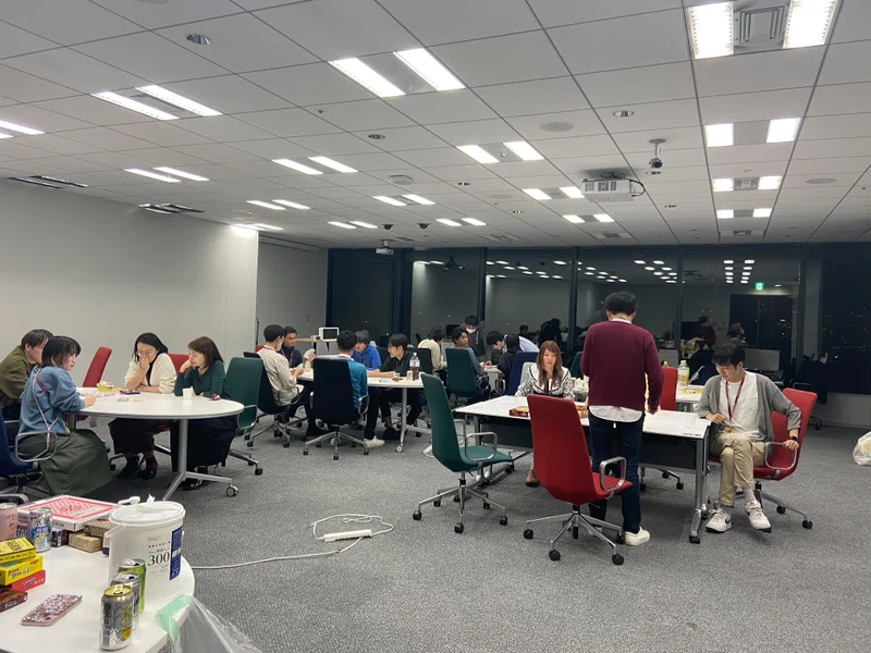年2回程度、業務終了後にヒカリエオフィスで活動。ボードゲーム好きの社員が、それぞれお気に入りのボードゲームを持ち込んで、おやつやご飯を食べながらゆるっと楽しんでいます。