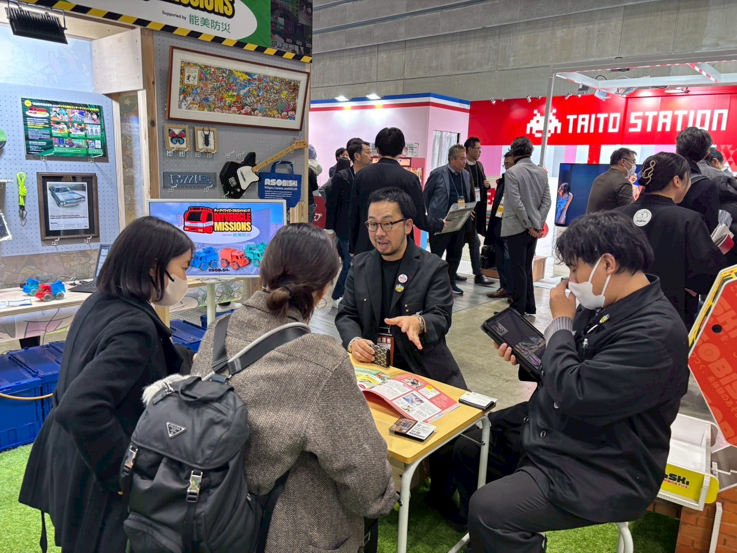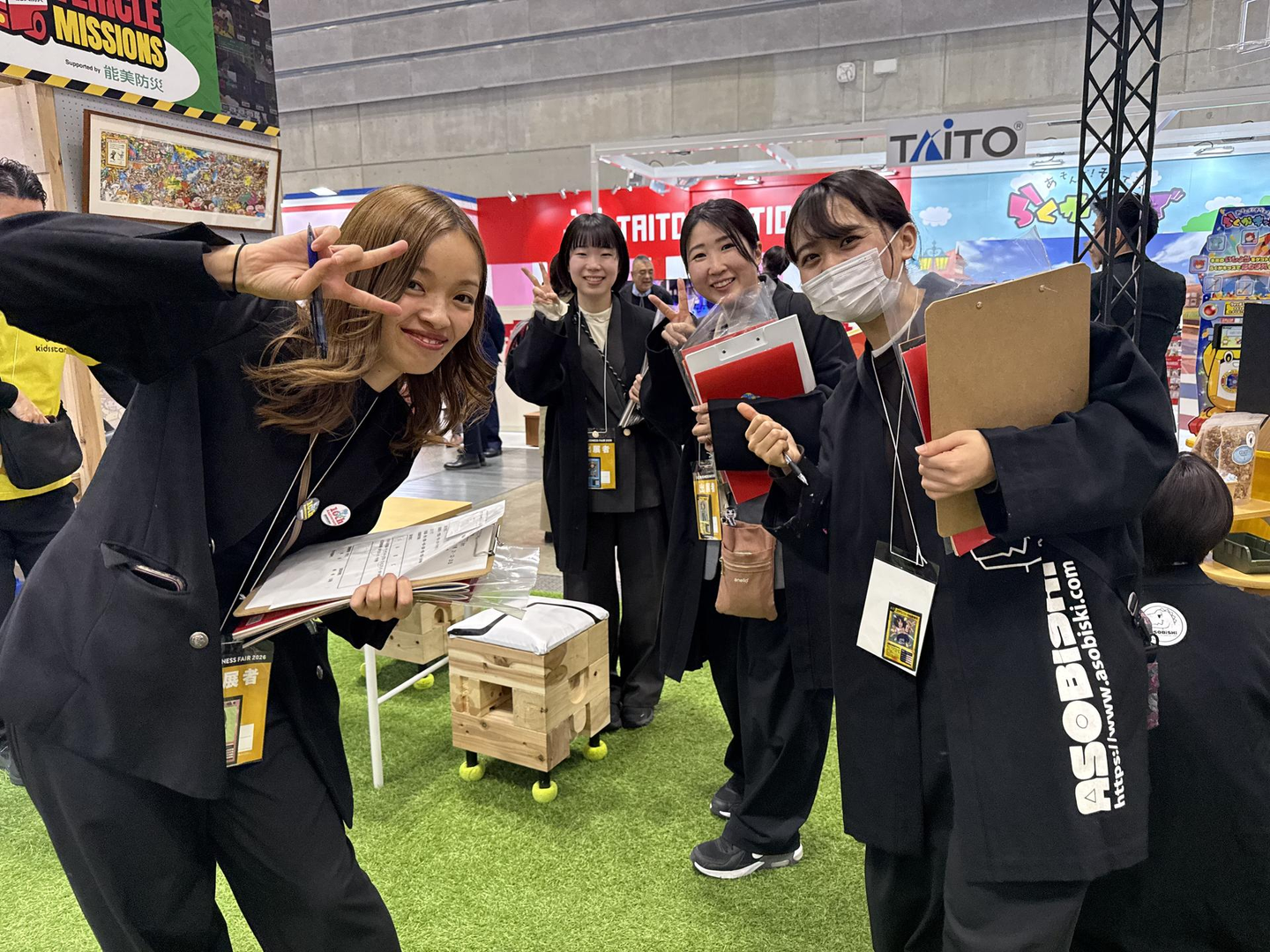 今年は10周年という事で全面的にリニューアル+おまけページも社員の協力をもらって面白いものになったかな、と思いますがいかがでしたでしょうか。 イベント会社の会社案内としては余分な情報ばかり充実しすぎの感もあります が、アソビスキーという変な会社の事を知ってもらう資料としては適切な内容なのではないかな、と独りごちております。恒例の会社案内制作も無事終了し、これも年始恒例のSCビジネスフェア2026に出展いたしましたがなんと!開催のテープカットを担当しまして、人生初のテープカットに終始緊張している画像です。
