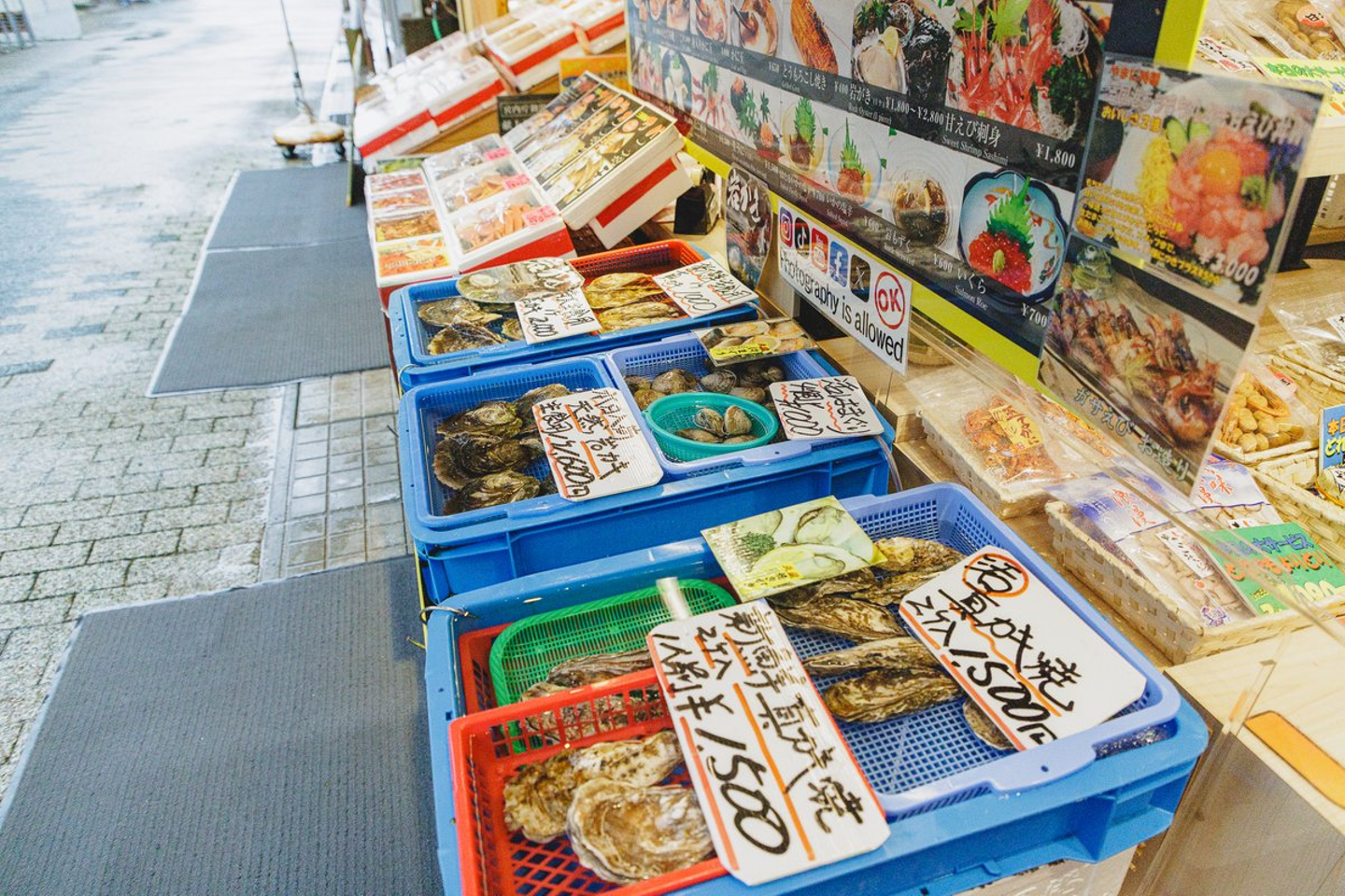 やまに水産の店頭には他に新鮮な魚介の幸がたくさん売ってます。もちろんその場で食べれます。