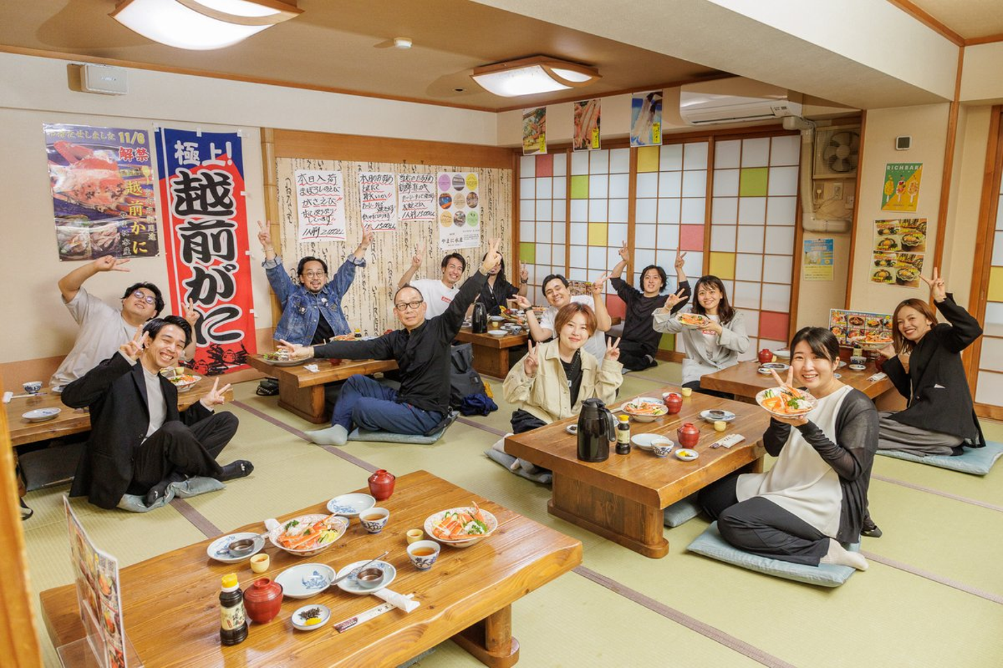 全員でカニポーズで激写!越前ガニ!って書いてありますけど食べてないw