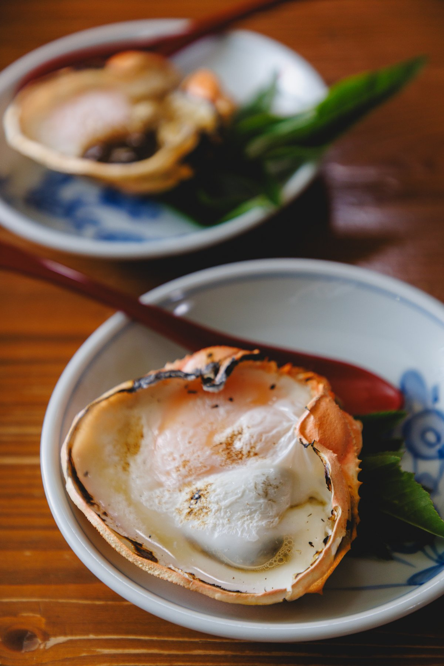 先にカニの頭に卵を落として蟹味噌とまぜて食うやつ(メニュー名知らない)が出てきます。爆うまい。