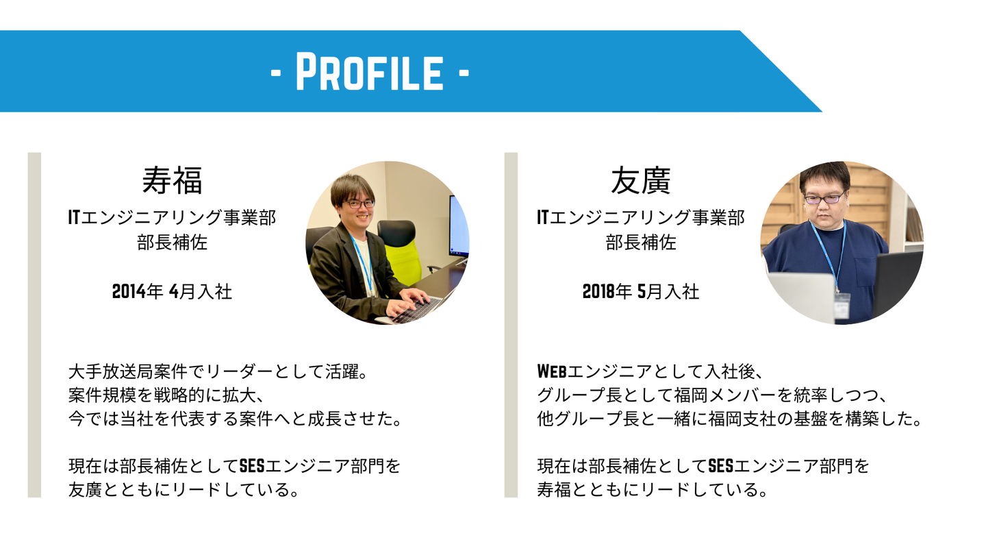 ともにエンジニアとして十分な経験がある中、現在はメンバーをまとめる立場で活躍しています。