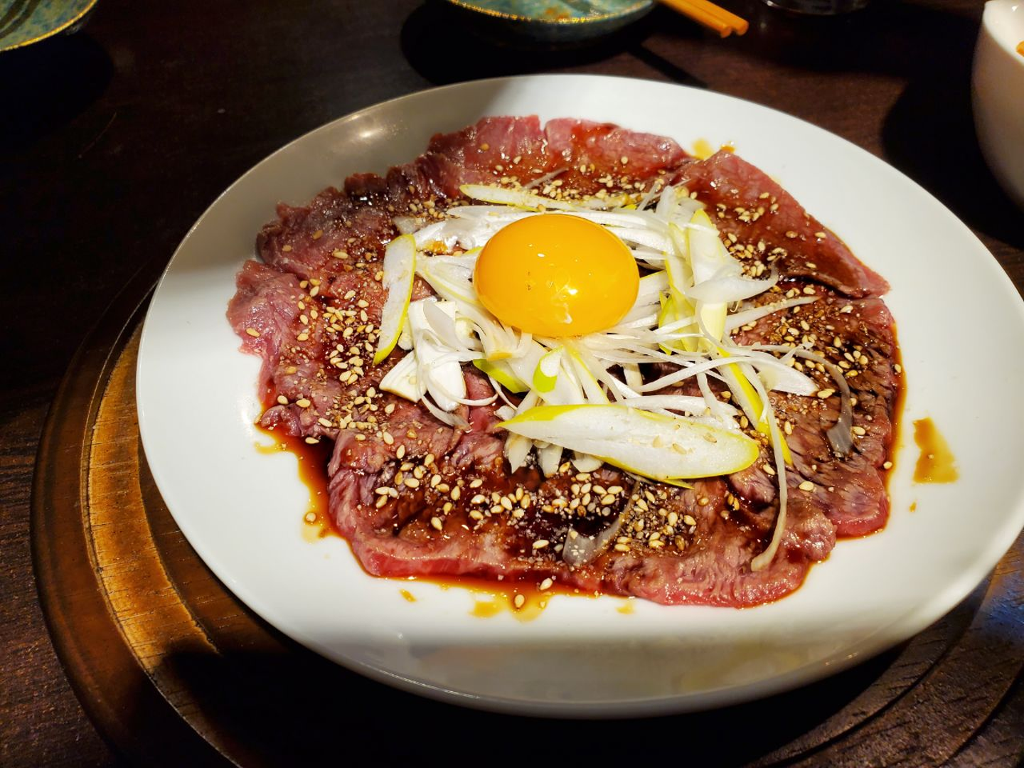 神社に向かう前にまずは腹ごしらえの焼き肉です(笑) △ この炙りユッケが絶品でした!