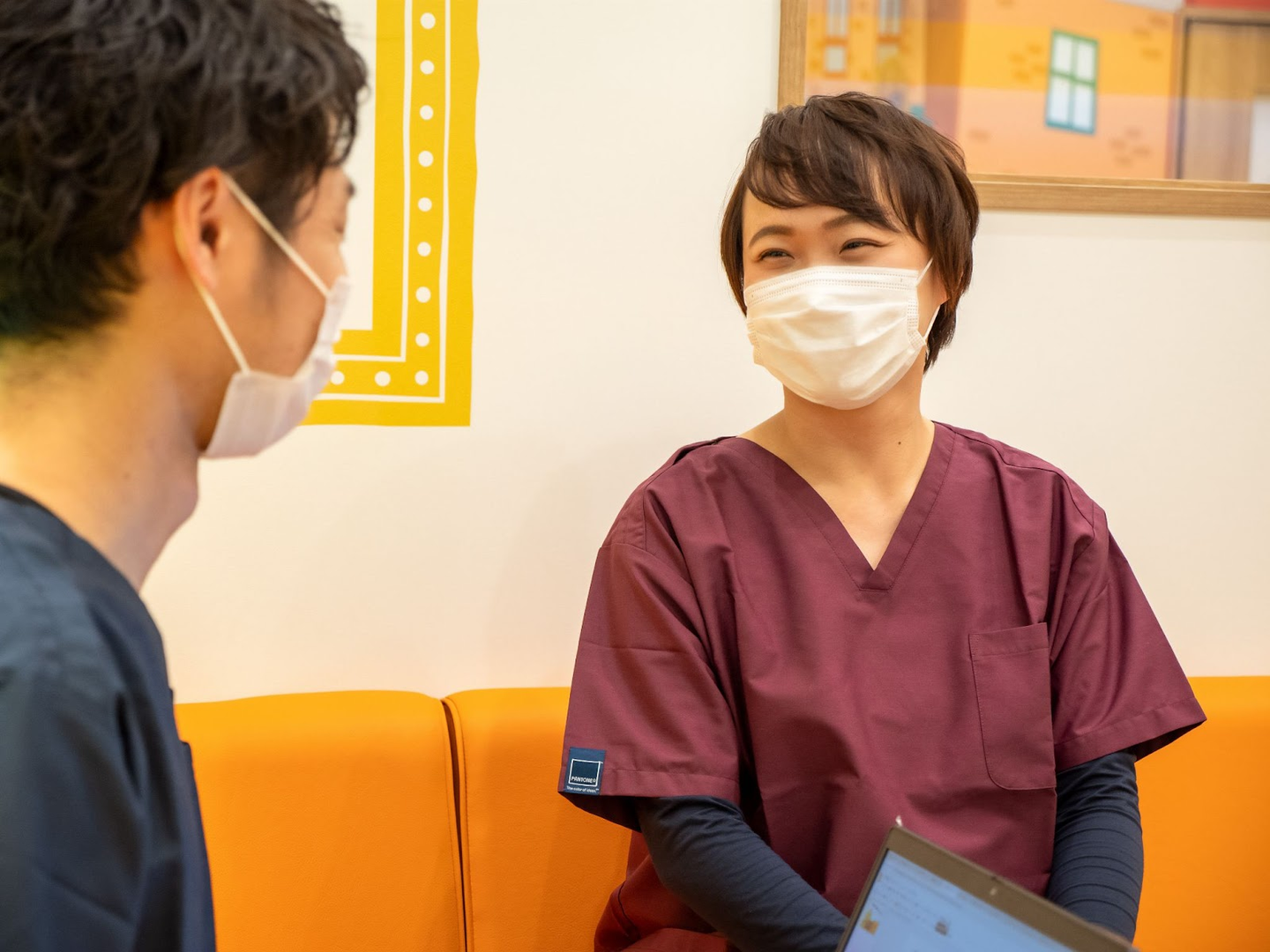 為貝さん「小児科の場合はこどもの打つワクチンの種類を覚える必要があります。月に1度勉強会を行っており、勉強会の担当者もいるので医療知識の共有をするようにしています。異業種から入社した方が多いので、皆最初に覚えることの苦労は経験してきています。だからこそ先輩がとても親身になって相談に乗ってくれますね。中途入社の看護師さんには”CAPSのクラークさんってここまでやるの?”と驚かれることがよくあります。」