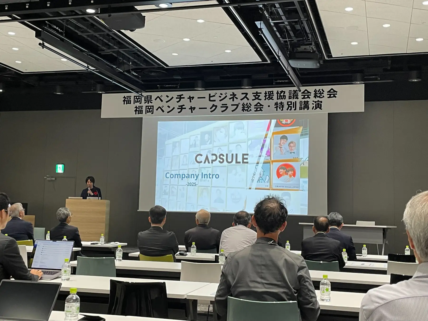 カプセルジャパン株式会社(本社:福岡県福岡市、取締役:埴渕修世、以下「CAPSULE」)は、福岡県ベンチャービジネス支援協議会が主催する中小・ベンチャー企業向けの成長支援プログラム「フクオカベンチャーマーケット(以下、FVM)」にて、「FVM特別賞2025」受賞企業として記念ピッチに登壇しました。