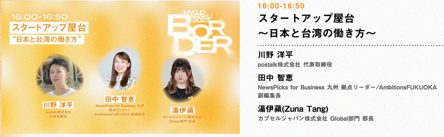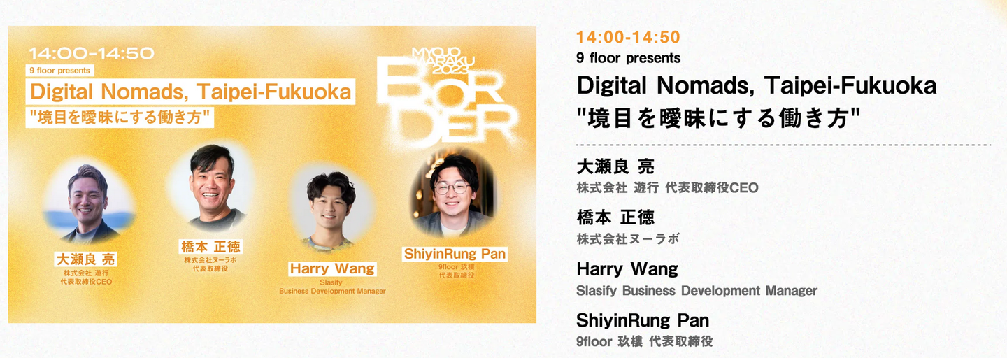 今回は、台湾で行われた福岡市主催のイベント「明星和楽2023inTAIWAN」に代表の埴渕が登壇しましたので、その様子をお伝えできればと思います。
