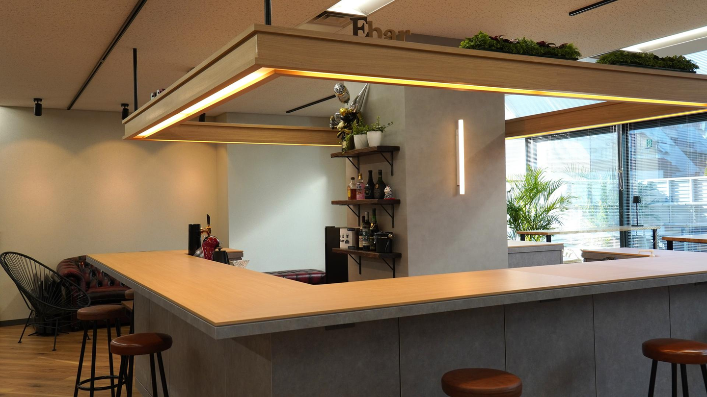 EVERRISEの社員にとって、なくてはならない(?)バースペース。今までのオフィスもカウンタータイプのバーはあったのですが、今回の移転でアイランドバーに進化しました!(一つ前のオフィスはこちら)