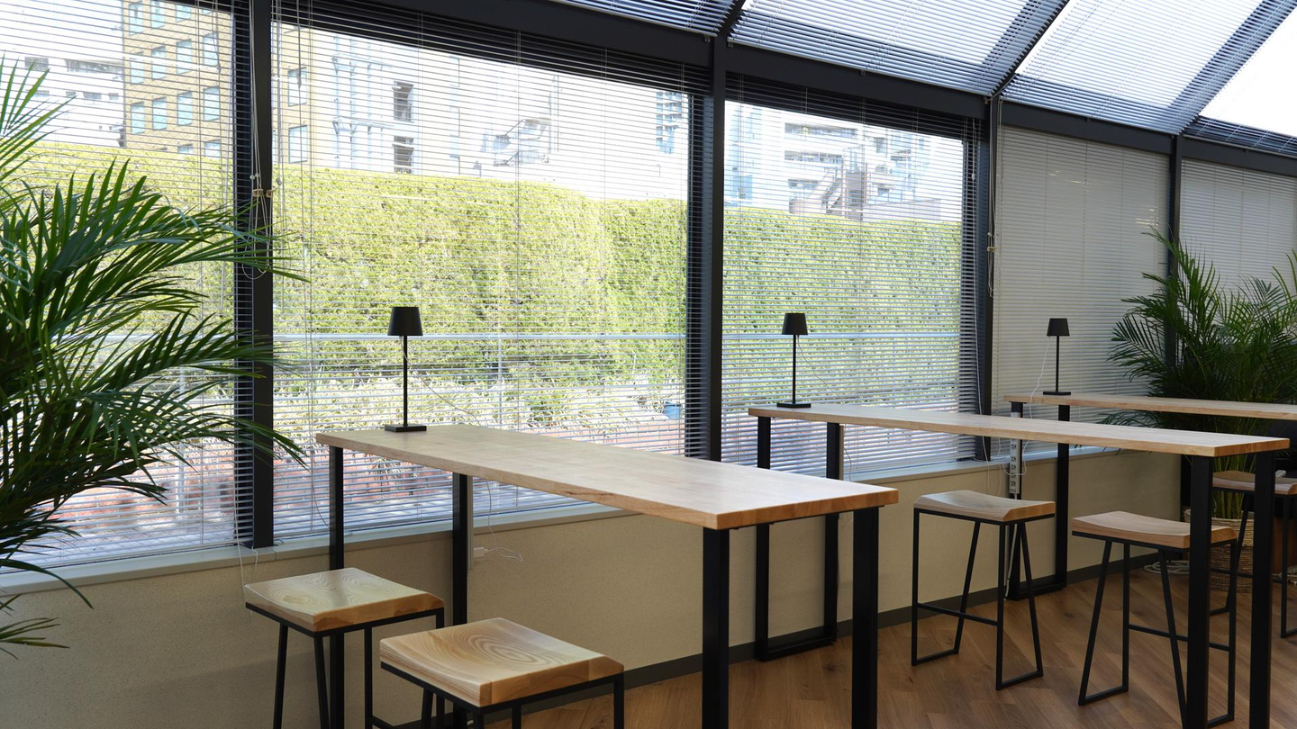 自然光が入り込むカウンター席。天気がいい日はとても気持ちがいいです。気分転換に立って作業している社員もいます。