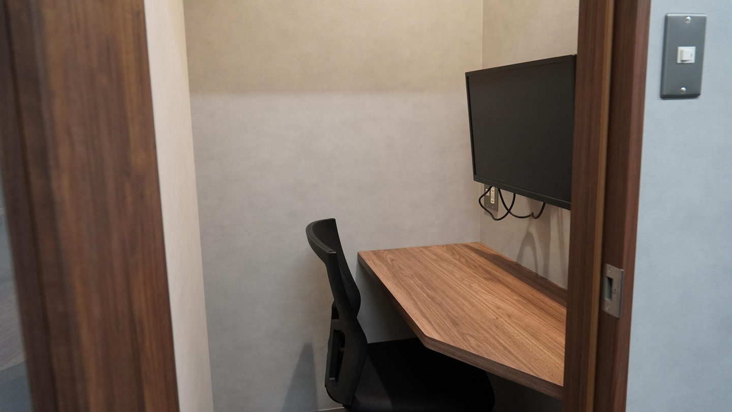 お客様やリモートワークのメンバーとのミーティングの際には1人用のテレカンブースに入ります。