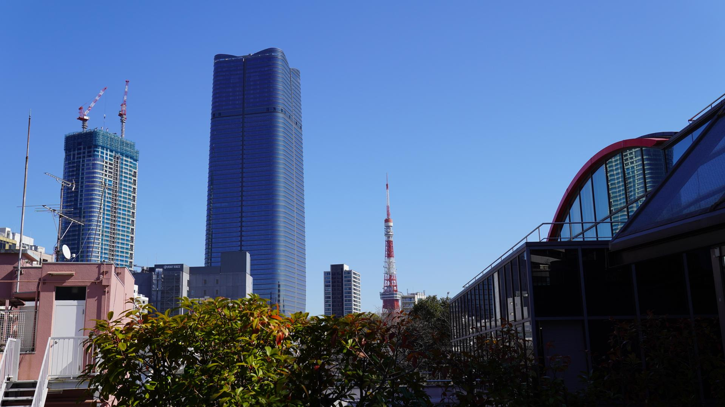 カフェスペースからテラスに出ると、東京タワーが見えます!もう少し暖かくなったらテラスでランチもよさそう。