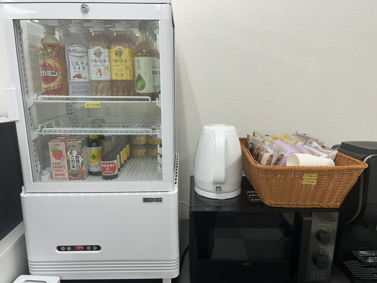 1. ジュースやお菓子を常備したコーナーを設置