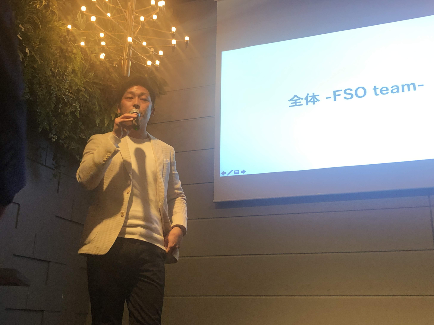 まずは代表から創業5年を振り返って一言と、これからのFSOの展望について全体に話がありました。感謝と希望に満ち溢れた挨拶に私も聞き入ってしまいました。