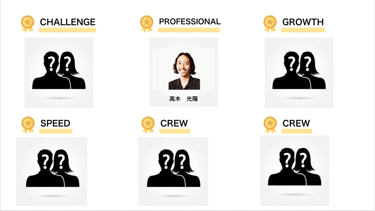 月初の1on1で「自分の案件を完璧にこなし、プラスαとして自分以外のメンバーの案件をサポートし推進していく」目標を掲げて、見事有言実行! また、それだけでなく困っているメンバーのサポート、点数化プロジェクトの伴走、他の方のアサイン工数が割けない時に自分から仕事を取りにいく姿勢がまさに「Professhional」な働き! (; ・`д・´)
