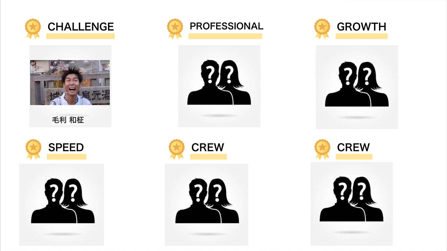 夜遅くの依頼であっても率先して対応してくれる姿は、まさにホスピタリティに溢れていました!身を粉にして「仲間のため」に働いてくれたこと。他のメンバーへの貢献度が高く、 BestCrew賞を受賞です(^^♪)