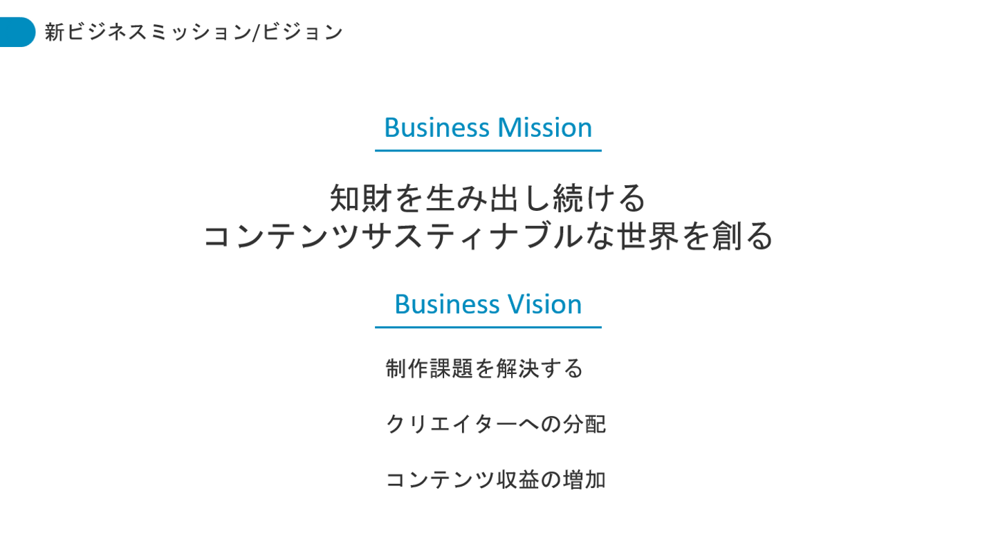「トータルエンタメコンテンツカンパニーとして、人々の人生にとって大事なエンタ―テイメントを届ける」というVISIONを掲げ、MISSIONには「コンテンツサスティナブルな仕組みを作り、日本のエンタメコンテンツをより世界へ-クリエイターへの還元、制作仕組みの最適化、コンテンツ予算の増加-」を掲げています。これらのテーマ軸に動画・エンタメコンテンツに関わる事業を幅広く展開しています。