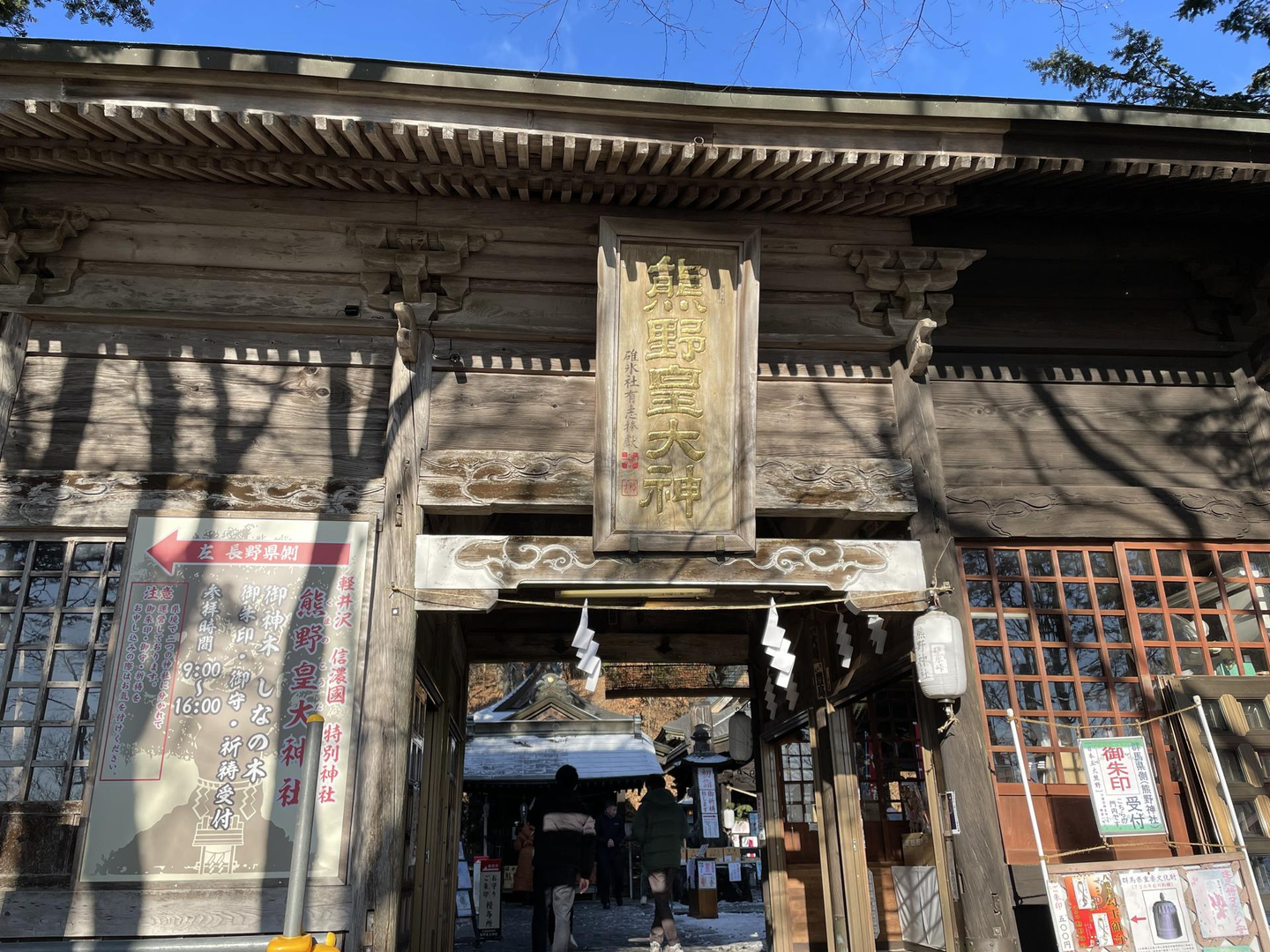 初詣の場所は、社殿が長野県軽井沢町と群馬県安中市の県境をまたぐ、熊野皇大神社。