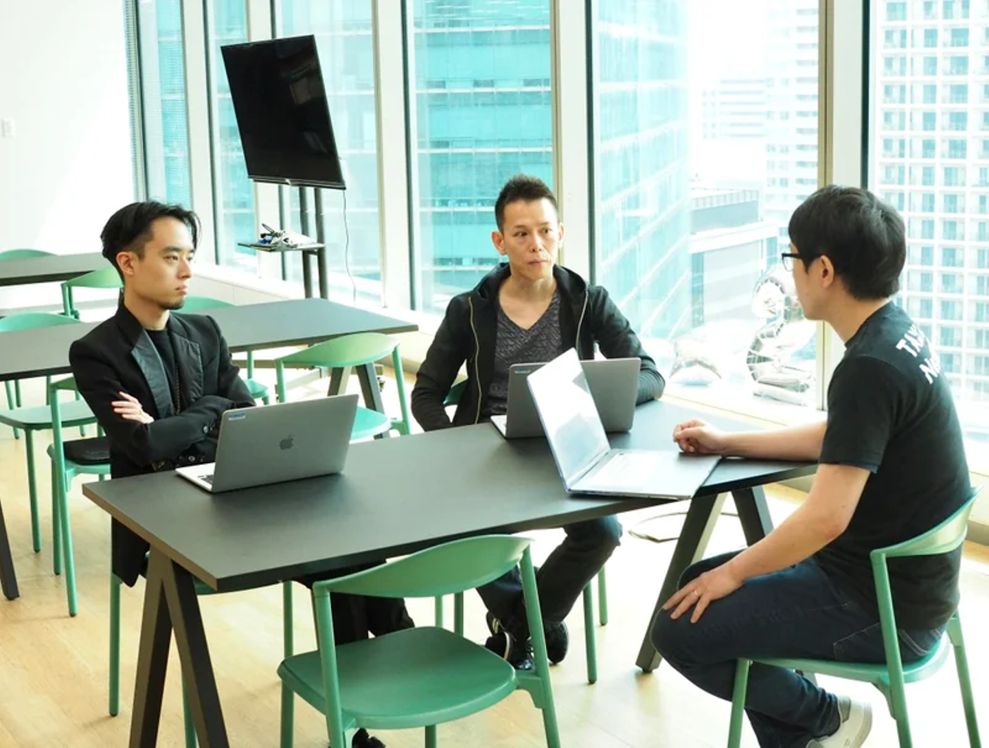 コミュニケーションデザイナーの中村(左)、本部長の黒澤(中央)、プロダクトデザイナーの向井(右)