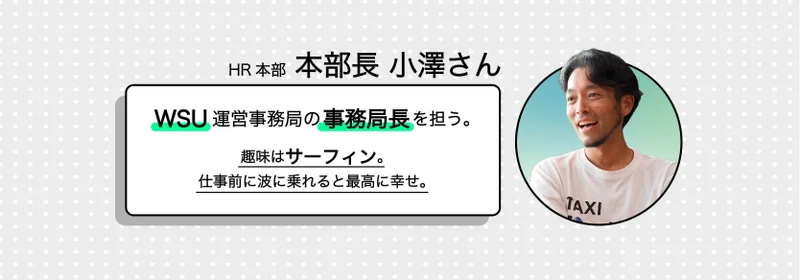 ということで、運営事務局長のHR本部長・小澤さんに、WSU実施にあたってどんな点を工夫しているか聞いてみました。