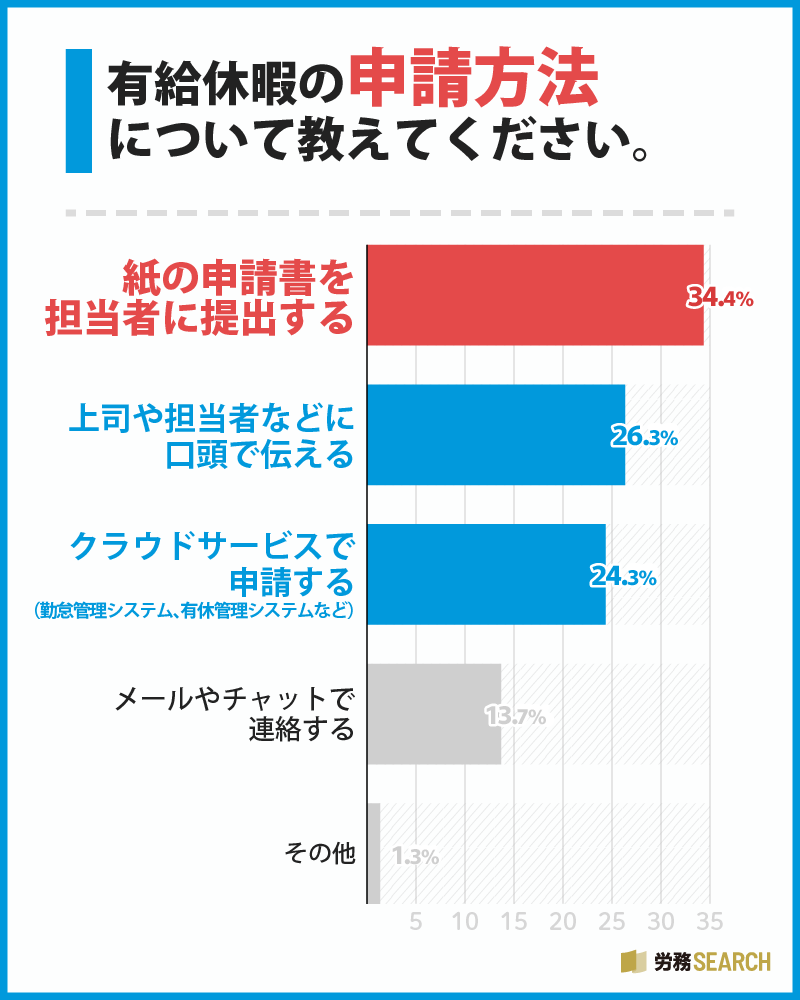 2024年におこなわれた有給休暇に関するアンケートでは、有給休暇の申請方法の第1位と2位はそれぞれ、
