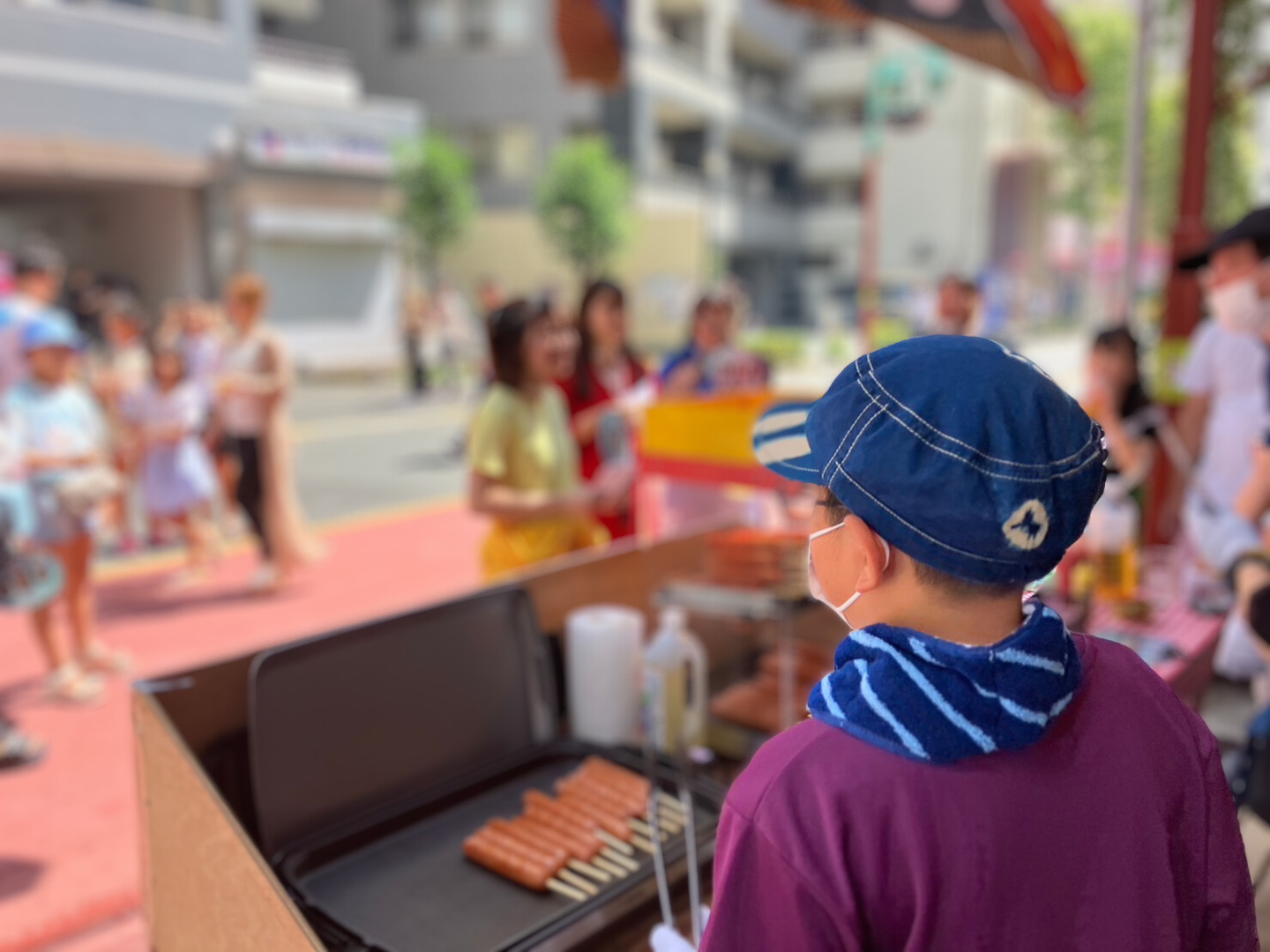 私たちは暑さに負けず、4年振りに開催されたお祭りで「フランクフルト屋」として参加してきました!