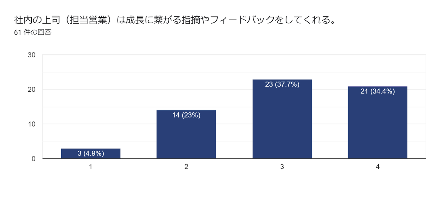 一方で、成長に繋がるフィードバックに関しては、良好と感じる従業員が72.1%という結果に終わっています。