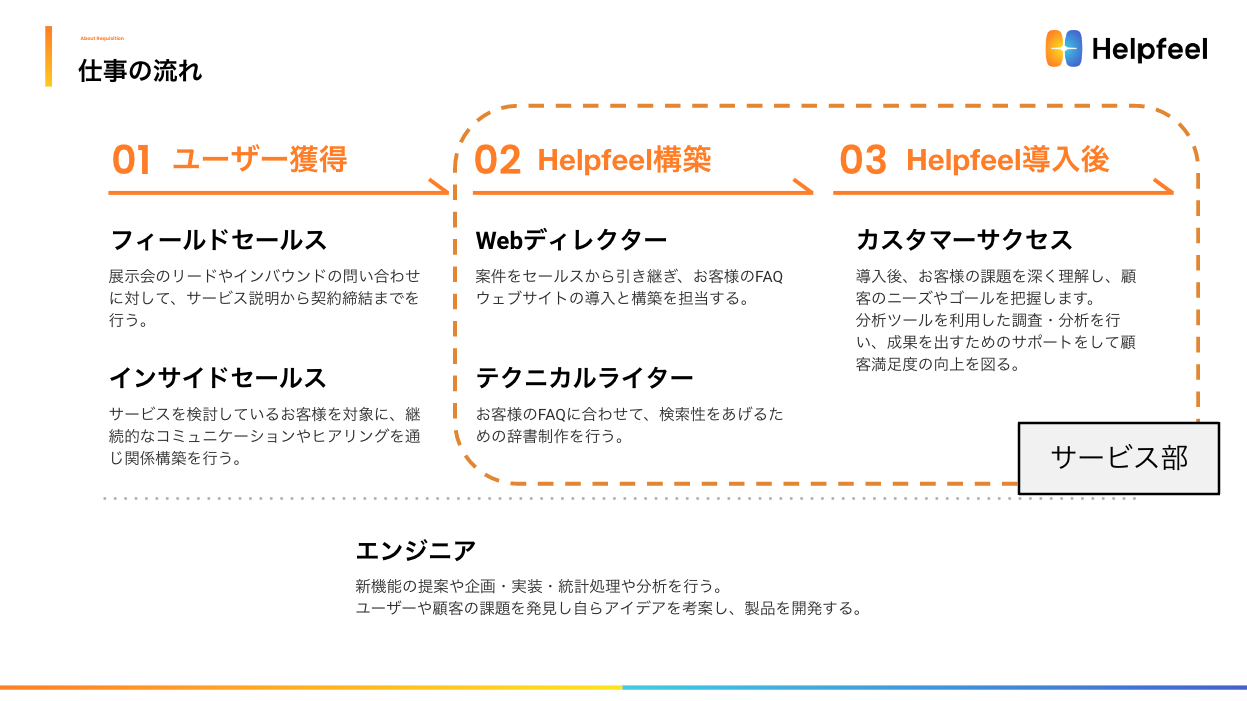 サービス部とはHelpfeelを契約したお客様に対して、直接そのサービス提供を担う部門です。