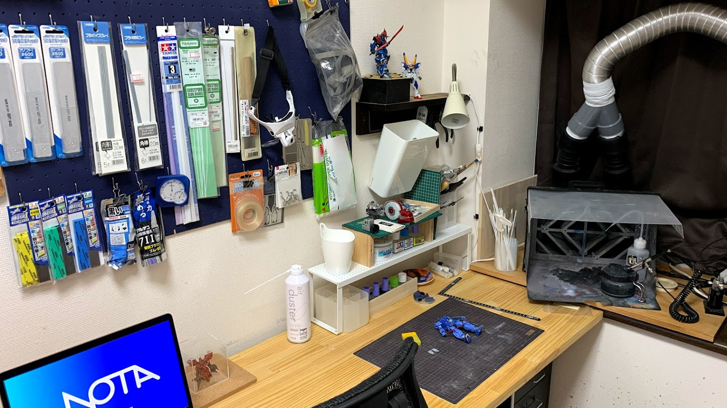 なので、パソコンを見ながらガンプラを作るようなスペースはあったのですが、自宅でフルリモートワークする想定がなかったため、Helpfeel入社にあたり改めて仕事環境 兼 趣味ができるスペースを用意しました。