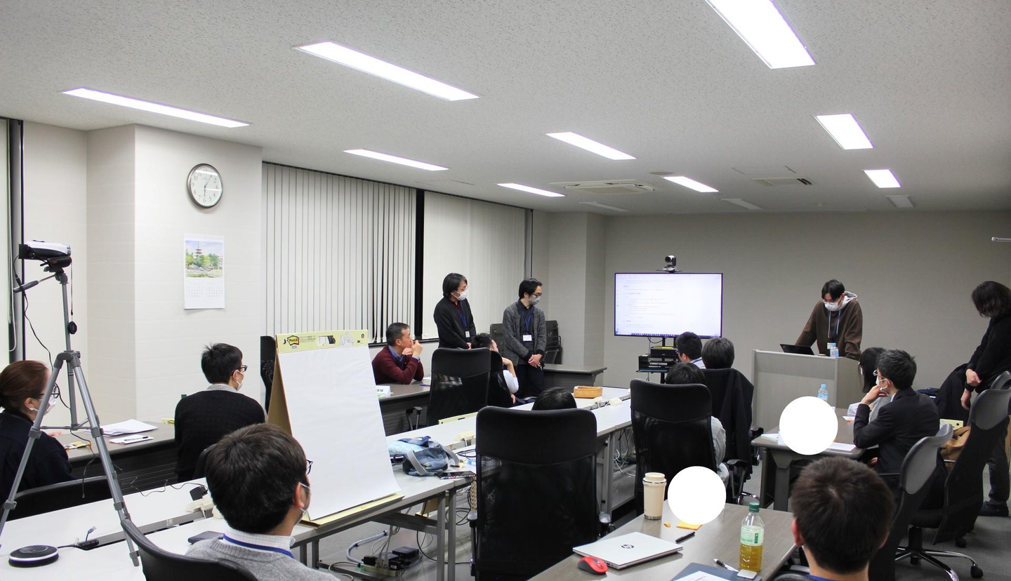 オブザーバーとして、前回主催者(現在・部長職/写真・中央右側)がオブザーバーとしてサポート役で参加。研修の継承(前回主催者→前回受講生が主催)された点も、ポイントです。