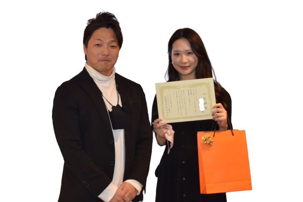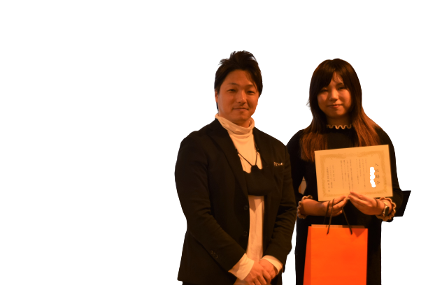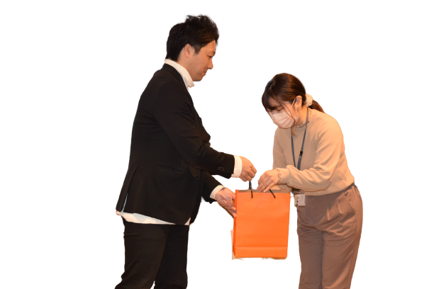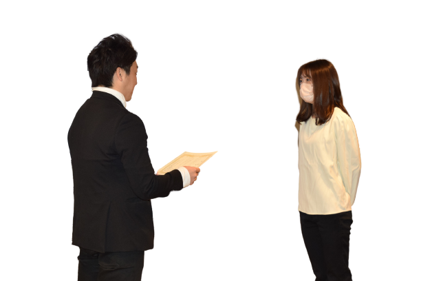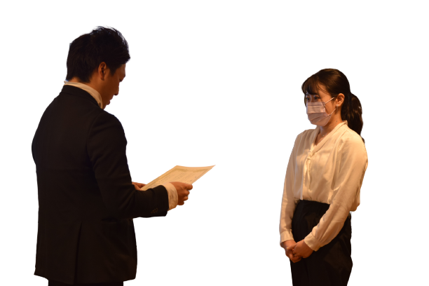 ひとりずつ檀上にあがり、入社辞令授与と記念品贈呈、そして入社の決意を発表してもらいました。