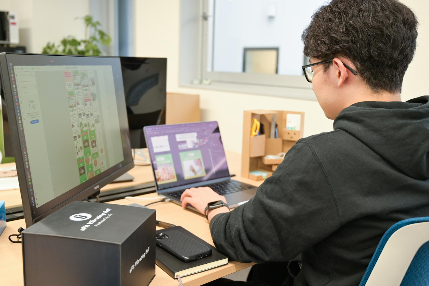 そして、社長と何度か面談をし、正式に正社員として内定をいただきました。それからも4月の入社まではインターンとして働き、より多くのデザイン業務を担当させていただきました。