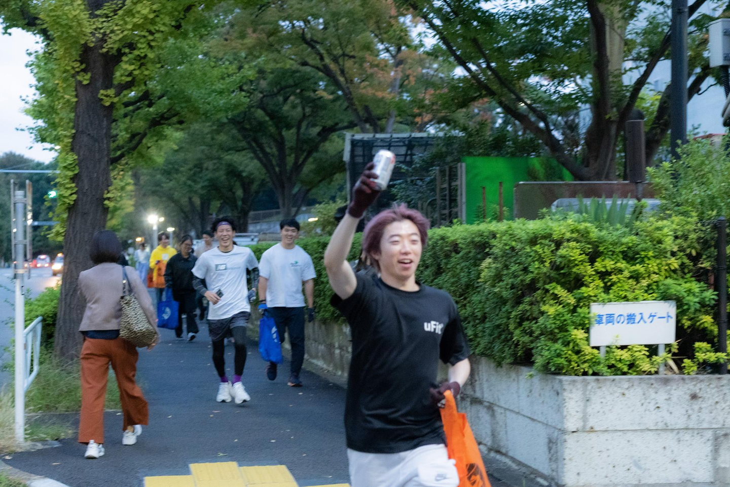 今回は社員全員(18人)でオフィス近くの渋谷の街を3km程のコースを40分程プロギングをしました!