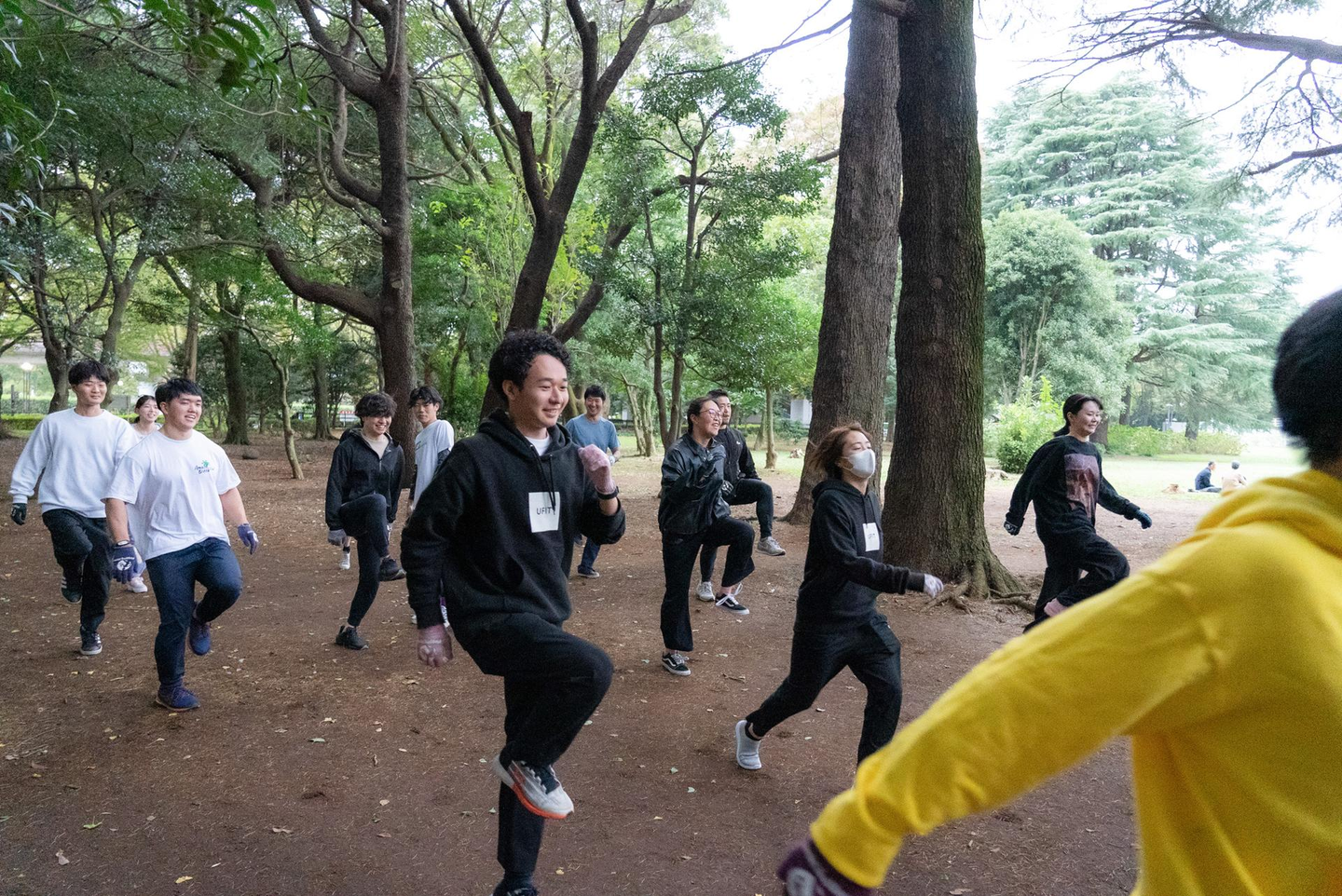 16時に代々木公園に集合し、まずは準備運動から始めました!